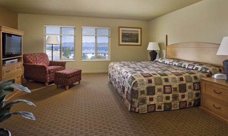 Worldmark Bear Lake, set against the backdrop of Utah’s “Caribbean of the Rockies,” offers a picturesque retreat. Our rooms blend rustic charm with modern comforts, featuring amenities like fully-equipped kitchens and cosy living spaces. Located close to the stunning Bear Lake, guests can enjoy activities like boating, fishing, and hiking. The resort’s unique selling point is its perfect mix of natural beauty and homely comfort. Facilities including an outdoor pool, hot tub, and volleyball court add to the experience. Worldmark Bear Lake is ideal for those seeking a serene escape with the option of adventure, embodying the essence of a tranquil yet active lakeside holiday.