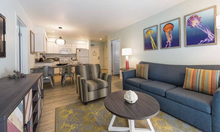 Worldmark San Diego-Mission Valley, nestled in the heart of San Diego, offers a contemporary urban retreat. Each room is thoughtfully designed for comfort, featuring modern kitchens, plush living areas, and the convenience of in-room air conditioning. This resort's unique selling point is its proximity to Mission Valley's myriad shopping, dining, and entertainment options, along with easy access to historic Old Town and beautiful beaches. On-site, guests can enjoy amenities like an outdoor heated pool, a fitness centre, and a games room. Ideal for those seeking a blend of city exploration and leisure, Worldmark San Diego-Mission Valley combines modern living with the excitement of San Diego's vibrant culture.