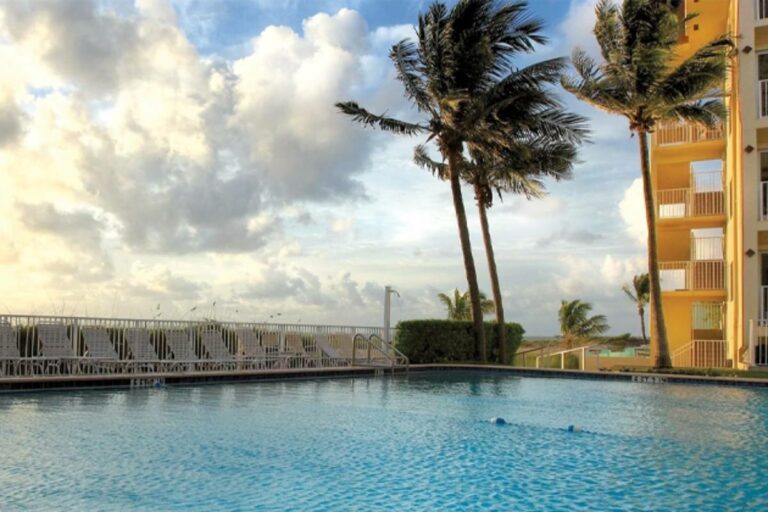 Experience the allure of Florida's sun-kissed coastline at WorldMark Sea Gardens, where tropical beauty intertwines with resort luxury. Located in Pompano Beach, this haven boasts direct beach access, inviting guests to bask in the golden sands and azure waters. Dive into our shimmering pools, meander through the lush tropical gardens, or invigorate your senses in the hot tub. The on-site activities and children's play area cater to all ages. Explore the vibrant local culture, indulge in seaside eateries, or simply watch the sunset from your balcony. At WorldMark Sea Gardens, every moment is imbued with coastal magic.